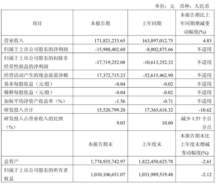 2025年第一季度,苏州清越光电科技股份有限公司实现营收1.72亿元,同比增长4.83%;归母净利润为-1598.84万元,同比下降99.78%;扣非净利润为-1771.93万元,同比下降66.95%;基本每股收益-0.04元。加权平均净资产收益率为-1.56%。
