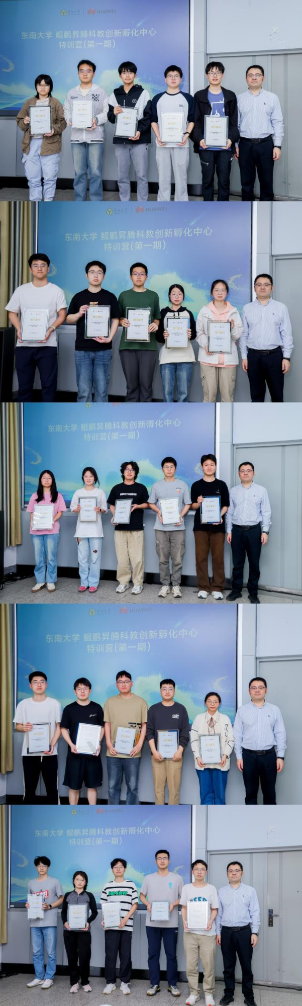 (MindSpore布道师崔花婷)最后,特训营为学员们举办了成果展示与结营仪式,为学员们颁发了结课证书。东南大学网络与信息中心副主任胡轶宁总结道:“孵化中心将持续推进‘科研-教学-产业’闭环,培养具备鲲鹏昇腾原生开发能力的复合型人才。”昇腾计算技术开发团队负责人则鼓励学员投身国产AI生态建设:“从算子开发到全栈优化,每个环节都是技术攻坚的战场。”