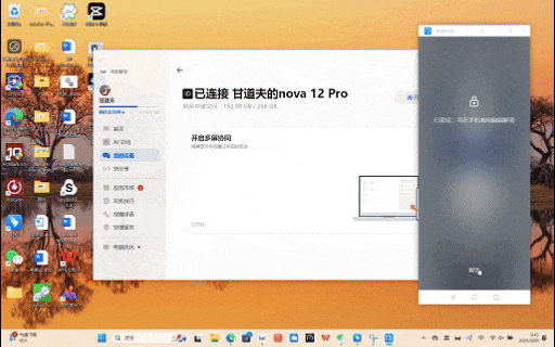 在与手机连接成功后,Hi MateBook D 16的屏幕右侧就会弹出手机界面,之后我们可以通过鼠标来实现对手机的操控,不仅可以打开手机中的应用,甚至还能解锁手机屏幕。