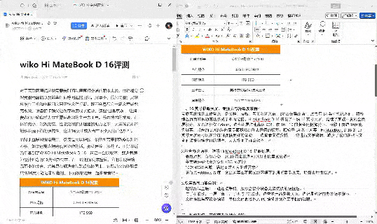 相较于14英寸屏幕,Hi MateBook D 16的16英寸大屏还可以在分屏时提供更好的体验,一边查看文档资料,一边进行文字编辑,减少了我们在撰写文章时频繁切换窗口的频率,大大提高了办公效率。