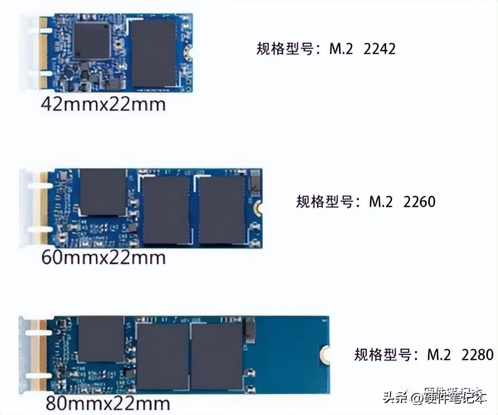 M.2固态盘宽度均为22mm,但有3种长度,分别为:42mm、60mm、80mm
