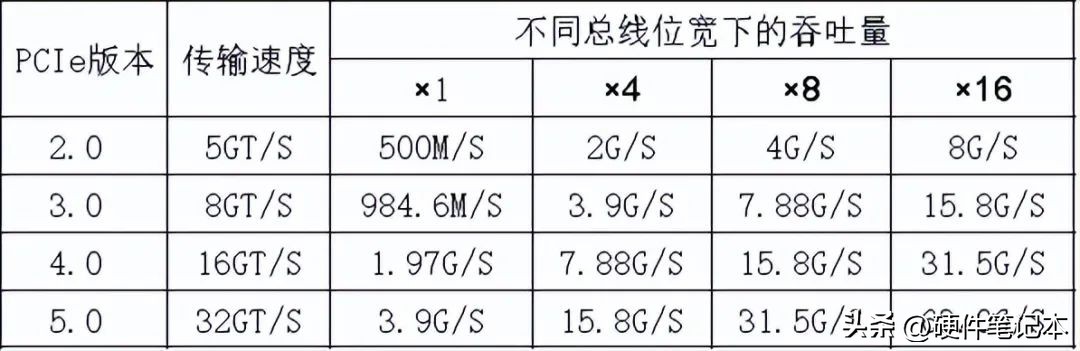 PCIe属于台式机的接口,根据总线位宽的不同,分 x1、x4、x8、x16几种。而PCIe有1.0、2.0、3.0、4.0、5.0几个版本,不同版本传输速度不同。