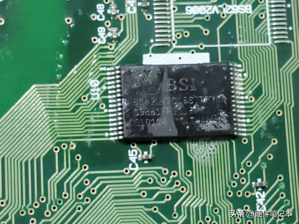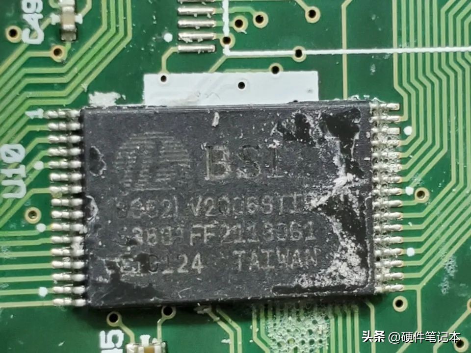 背部的芯片位置是两颗的,但是只安装一颗芯片,丝印不太清晰,品牌是BSI联邦科技的,应该是存储芯片,中国台湾制造。