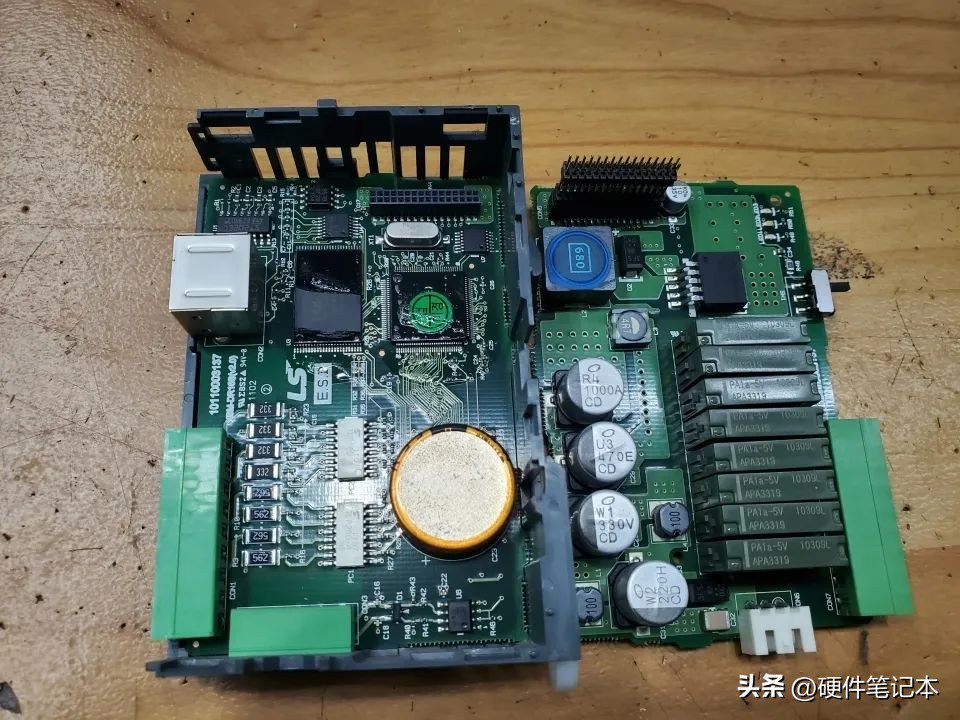 拆开后是两块主板的,通过插口链接一起,左边的为可编程部分,右边的为跑程序的部分。