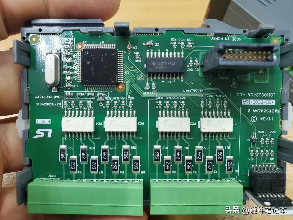 来控制下面4个白色的TLP280-4,是4个可编程控制器AC/DC输入模块PC卡调制调节器。后面通过几个贴片电阻链接对应的接口。