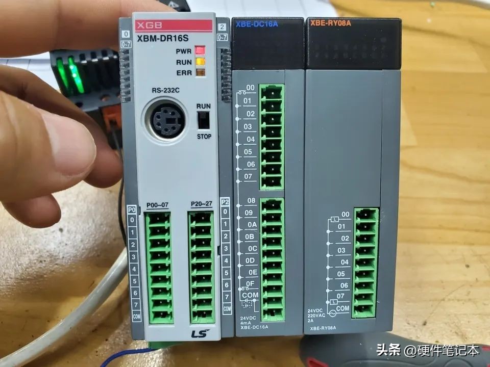 第一个是LS可编程控制器,第二个是LS的XGB系列I/O模块,第三个是输出模块。
