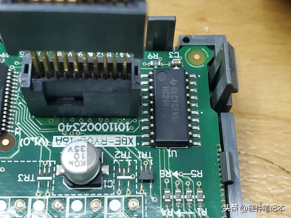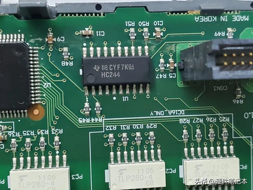 靠近接口的第一个芯片HC244,是德州仪器的一颗带三态输出的八进制总线收发器。负责数据传输吧。