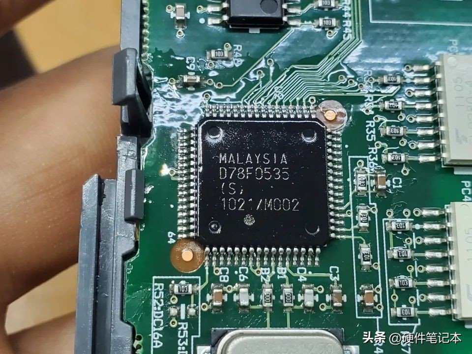 左边那个马来西亚生产的瑞萨D78F05358位单片微控制器。