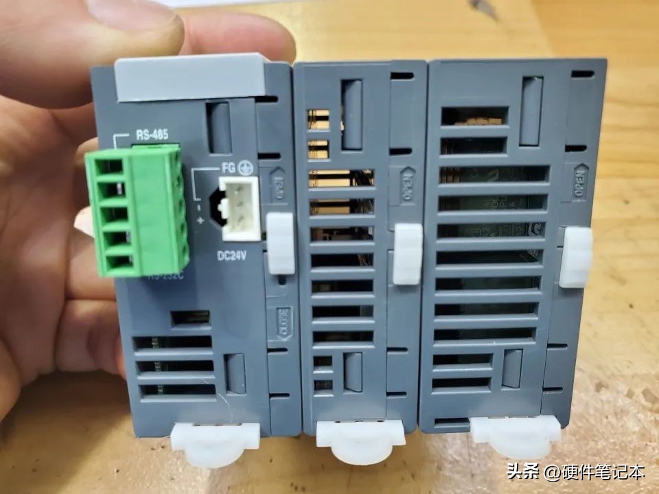 其中,第三组外面有一个扩展口可以撕开,继续往外扩展。编程模块底部有一个RS485接口,还有一个dc24V电源接口。