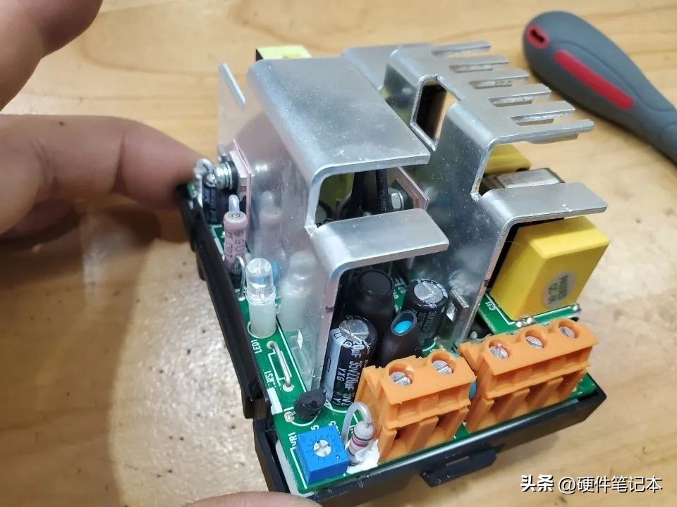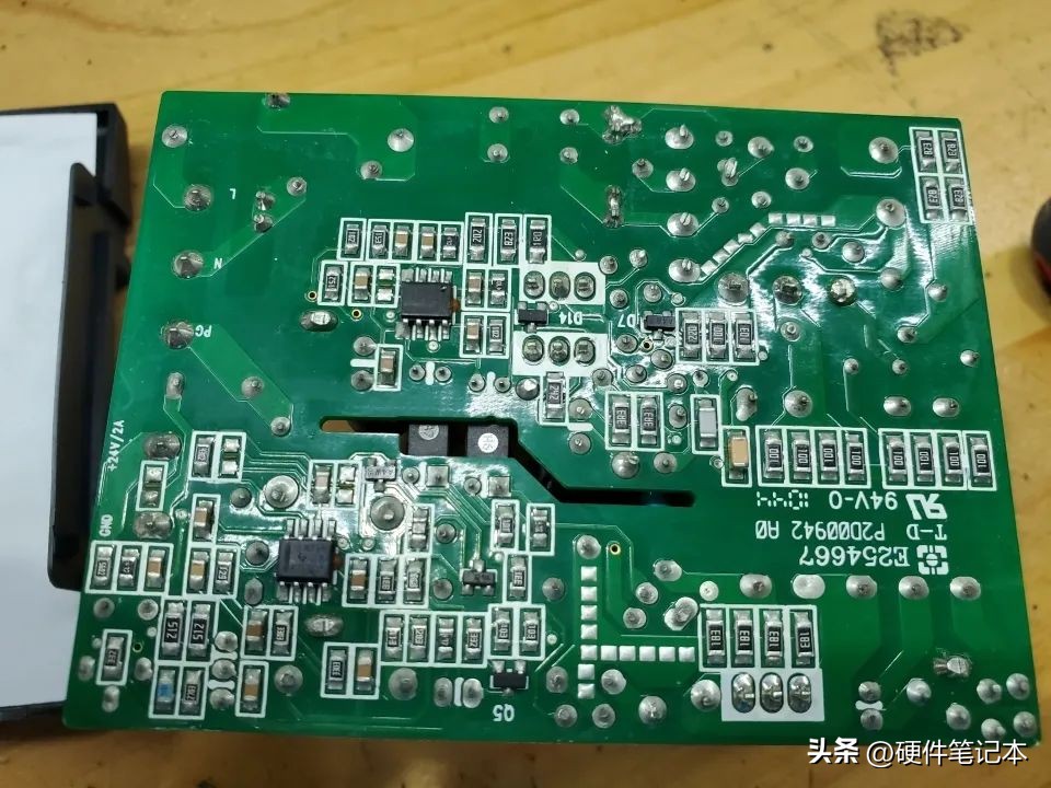 再来看看这个轨道电源,品牌魏德米勒,24V2A输出,最大功率48W,型号8739170000,pcb生产日期2007/11/27,一个16年的电源了。现在在某宝售价100-300左右,不过用料还可以,三信电容,变压器,安规电容,东芝K2607场效管,这堆用料这个价格,大家觉得怎么样?