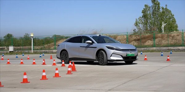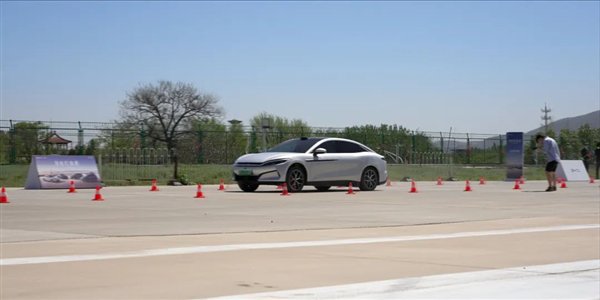 就比如大家可以看看下面这俩视频,分别是纯电汉 L 在起步和 8 字绕桩时候的姿态。虽然看着好像很帅很快也没有失控,但是大伙听声音,很明显可以听到轮胎打滑产生的啸叫声。