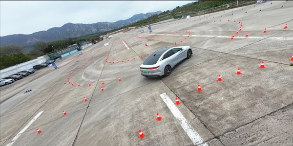 因为这段时间关于大马力车型的各种争议,出于安全的考虑, 1102 匹的汉 L 没法在公开的道路上试驾,只能在封闭的场地里做有限的科目试驾,比如加速、绕桩等等。