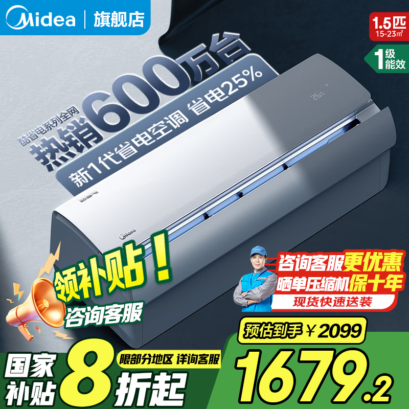 美的酷省电1.5匹空调京东促销价2049元