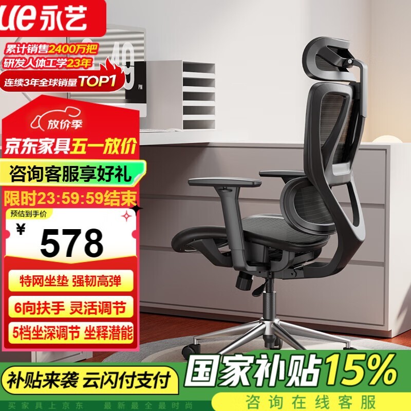 永艺撑腰椅沃克PRO人体工学电脑办公椅A100PRO灰框粉款限时特惠