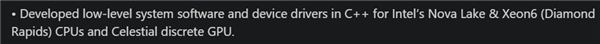 根据从Intel员工职业文件挖掘出来的信息显示,针对Xe3独立显卡的底层系统软件和设备驱动,已经在开发中,使用的是C++语言。