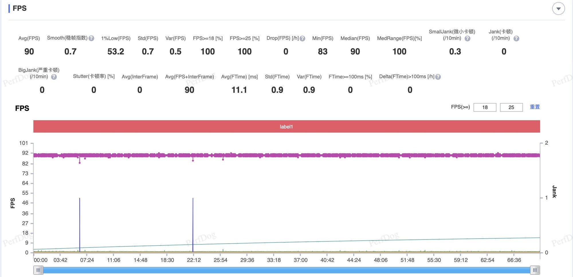 一加13T一小时和平精英帧率表现