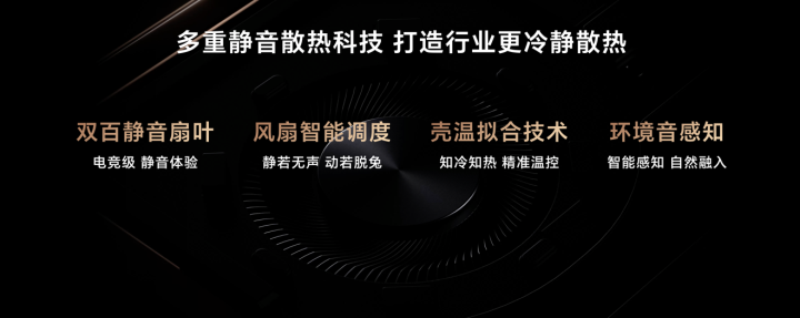 同时,产品采用全新荣耀智静散热设计,配备行业领先12mm大直径复合3D隧道式热管、12V电竞级双百叶静音风扇、相变导热材料、0.075mm超薄纯铜散热鳍片等散热组件,搭配风扇智能调度、壳温拟合以及环境音感知等技术,打造行业更冷更静的散热体验。