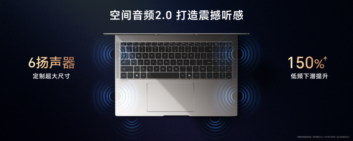 荣耀MagicBook Pro 16 2025空间音频软硬件全面升级,整机定制超大尺寸六扬声器设计,低频下潜提升150%,全新算法实现至高105°宽广声场,提供更震撼听感。空间音频2.0支持对FPS、赛车、MOBA等不同类型游戏进行针对性的调校优化,带来更精准的听声辨位,更强的沉浸感,让用户深度体验到游戏细节。