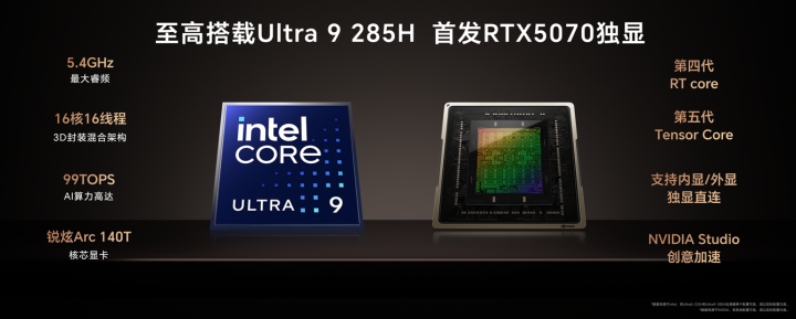 CPU方面,荣耀MagicBook Pro 16 2025全系最高搭载英特尔酷睿Ultra 9 285H处理器,采用Arrow Lake架构,16核心16线程,性能核心的最高频率可达5.4GHz,整体AI算力高达99 TOPS。