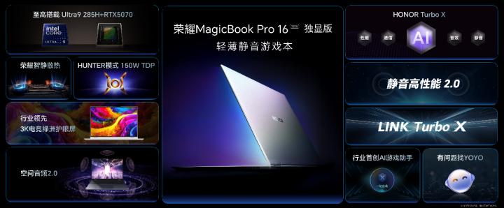 荣耀MagicBook Pro 16 2025发布 首搭5070 HUNTER版9499元起