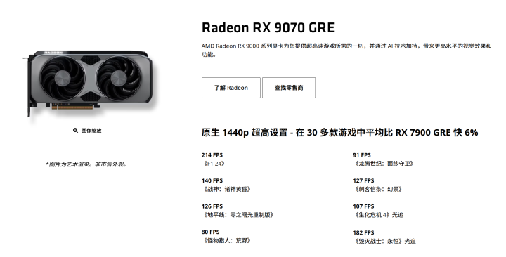 AMD上周宣布推出AMD Radeon RX 9070 GRE显卡,这款显卡可为玩家在游玩热门网络游戏时带来优质,畅快的性能表现,并在最新的3A游戏大作中实现流畅、丝滑的游戏体验。凭借对AMD FSR 4、AMD HYPR-RX以及AFMF等前沿技术的支持,玩家不仅可以畅快地在提升游戏画质,享受2K分辨率下得到更加优质的游戏体验与更加精美的画面效果,并具备强劲性能以跃升至4K分辨率。目前已经有多个品牌的该系列显卡上架开启预售,预售价最低为4199元。