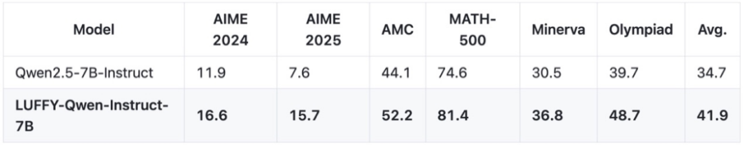 图表 11. LUFFY 在 Qwen2.5-Instruct-7B 上的性能表现。