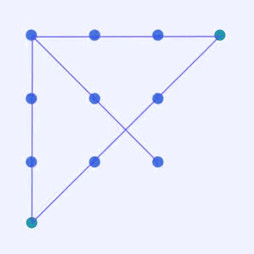 回答这个问题前,我想邀请你做个小游戏。下面这张图,请用4笔(四条头尾相连的线段),来连接所有九个点。