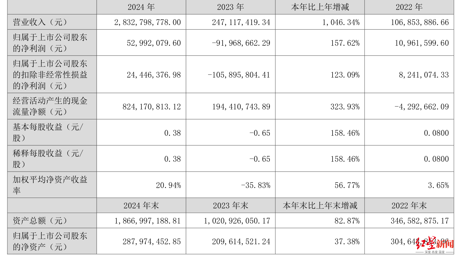 从负债重大变化方面看,截至2024年末,公司合同负债较上年末增加234.02%,占公司总资产比重上升18.89个百分点;一年内到期的非流动负债较上年末增加8.01%,占公司总资产比重下降6.46个百分点;其他应付款(含利息和股利)较上年末减少82.41%,占公司总资产比重下降5.47个百分点;应付职工薪酬较上年末增加191.04%,占公司总资产比重上升3.82个百分点。