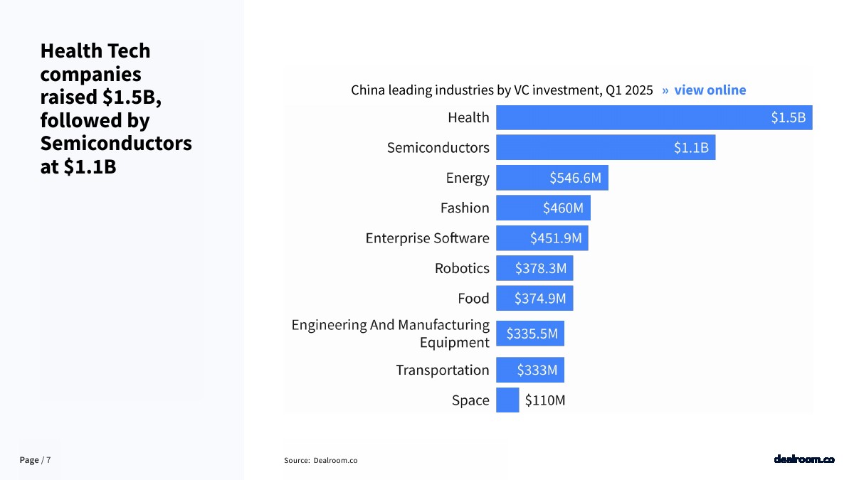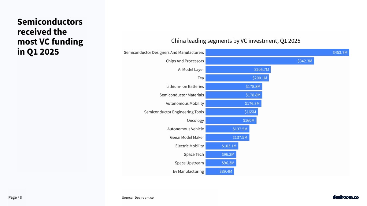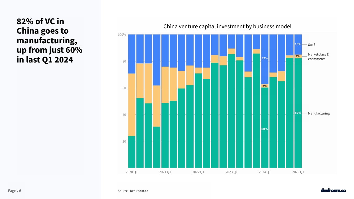 中国82%的风投资金流向制造业。较2024年第一季度60%有显著提升。