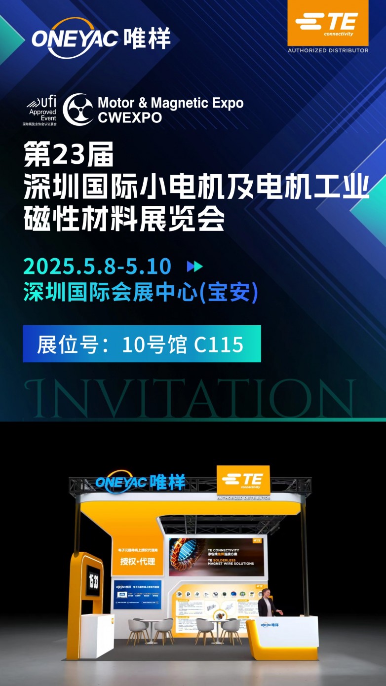 唯样联合原厂TE Connectivity将首次参加本次深圳小电机展,邀您共探“免焊接·高效能·可持续”的电机连接创新未来!