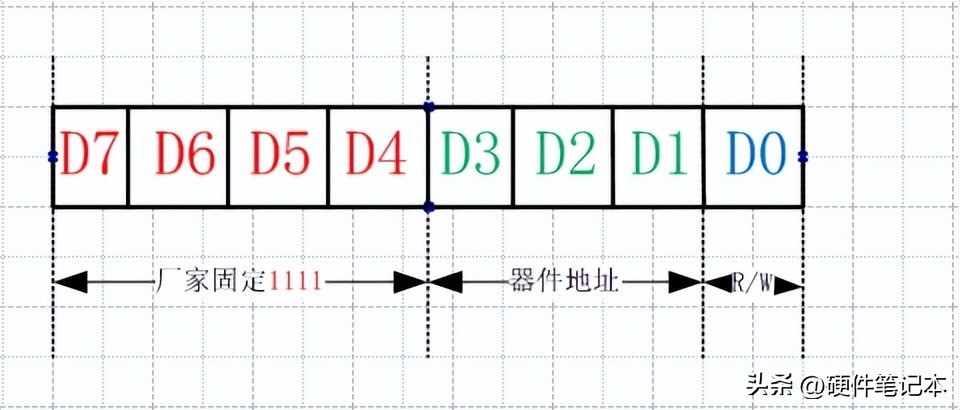 器件地址的D7-D4一般都是被厂家固定了为1111,余下的D3,D2和D1连接到芯片的A2,A1和A0决定;D0为0x00表示写,D0为0x01表示读。大家看例程都是些0xA0和0xA1就是这个原因。