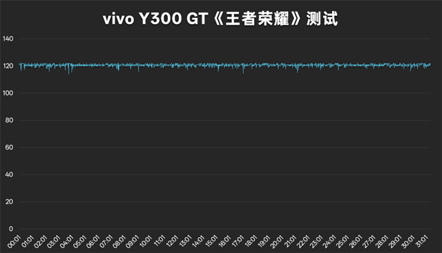 只有性能还不够,续航长才能更畅爽,vivo Y300 GT搭载了一个7620mAh的超薄蓝海电池,采用第三代硅负极电池,能有这样的大容量电池让续航非常出色,我们也进行了测试,半个小时的高清画质120fps模式《王者荣耀》,仅消耗6%电量,可以说,vivo Y300 GT的电量足以支撑8小时畅爽王者,玩到你尽兴。同时,vivo Y300 GT还有着不错的充电表现,搭载了90W远航闪充,能够在7620mAh如此大电池上用上90W充电还是平衡了续航和充电的。