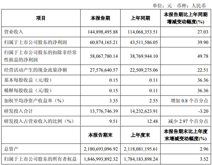 2025 年第一季度,莱特光电经营业绩保持良好增长态势,单季度营业收入与净利润均创下历史新高。报告期内,莱特光电实现营收 1.45 亿元,同比增长 27.03%;实现归母净利润6,087.42 万元,同比增长 39.90%。