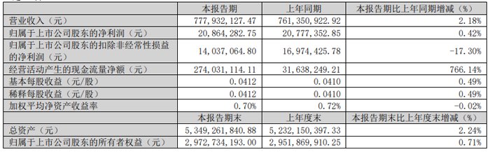 2025 年第一季度,深纺织实现营业收入7.78亿元,同比增长2.18%;实现归母净利润 2,086.43 万元,同比微增0.42%。与去年同期相比,经营业绩保持平稳。经营现金流净额高达2.74亿元,同比激增766.14%。