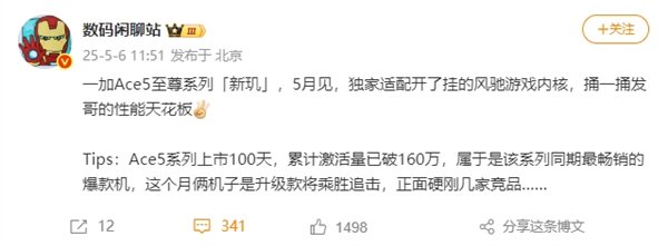 快科技5月6日消息,据博主数码闲聊站爆料,一加Ace 5至尊系列将在本月发布,会首发搭载联发科天玑全新旗舰处理器,独家适配更强的风驰游戏内核,有望触及联发科性能天花板。
