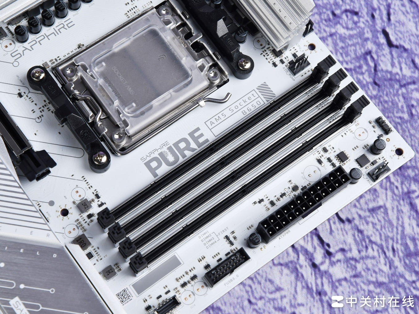 蓝宝石PURE 极地 B650M WIFI主板是一款标准的M-ATX主板,配备有4个DDR5内存插槽。采用AM5插槽,能与B850一样,兼容7000/8000/9000这些最近几年推出的AMD锐龙处理器。在供电方面,与蓝宝石自家其他B650主板一样,使用了12+2+1供电模组,并且供电区域覆盖有两片金属散热装甲辅助散热。供电接口采用双8pin设计,相较于单8Pin功耗输出上限更高,可以保证锐龙处理器的全力输出。