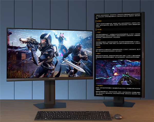 此外,显示器配置了INNOCN GAME+ AI来进行画面增强,可提供十档色彩增强档位、对比度增强、暗部平衡、夜市模式、极速游戏模式等12种场景模式,自带升降旋转底座,支持100mm上下高度调节、俯仰-5°~+20°度调节、垂直旋转等功能。