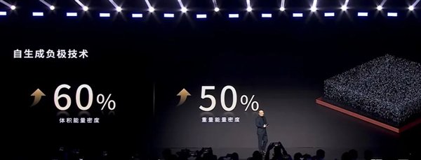 发布会上的数据显示,这么搞下来,他们能让电池体积能量密度提升 60% ,重量能量密度提升 50% 。