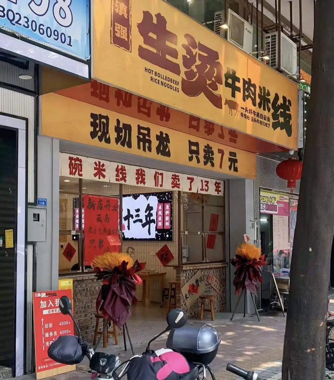其中,生烫牛肉米线就是一个典型例子,是去年米线赛道里诞生的细分品类。在米线这个经典大单品里面,创新一直是高难度的事情,或许是伴随着去年牛肉降价潮,吸引了越来越多餐饮人盯上了牛肉餐饮生意,但是这门生意并不是谁都能做好。