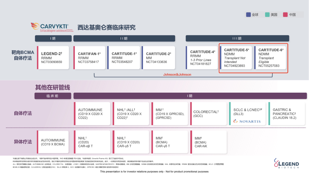 这里所长也给大家简单介绍一下什么是Carvykti的C-5以及C-6,下图为传奇生物当下的研发管线,用红框框起来的就是C-5以及C-6。