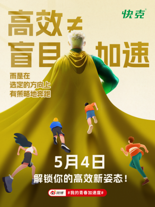 正如本次五四话题#我的青春加速度#所传递的:高效不是盲目加速,而是在热爱的方向上有策略地奔跑。青年无需被“内卷”裹挟,也无需用“躺平”自我安慰,快克愿以产品力与品牌力双线护航,助力青年在热爱的领域专注奔跑,让45°人生既有向上的力量,亦有自在的底气。