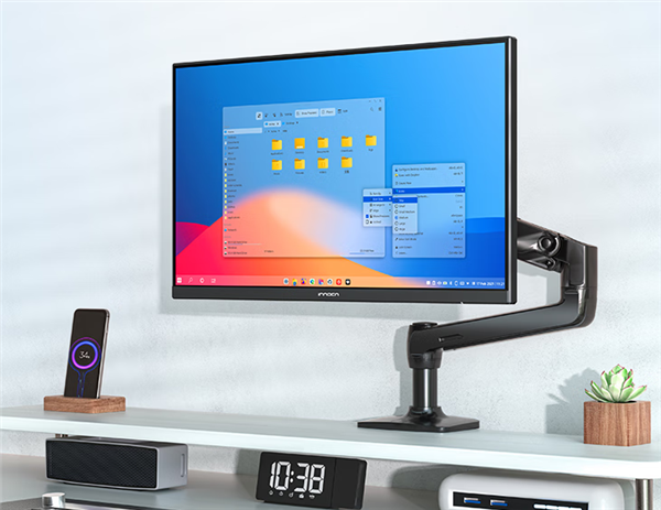 此外,显示器不可调节高度和角度,但支架带有一个走线孔,同时支持100×100mm VESA壁挂。