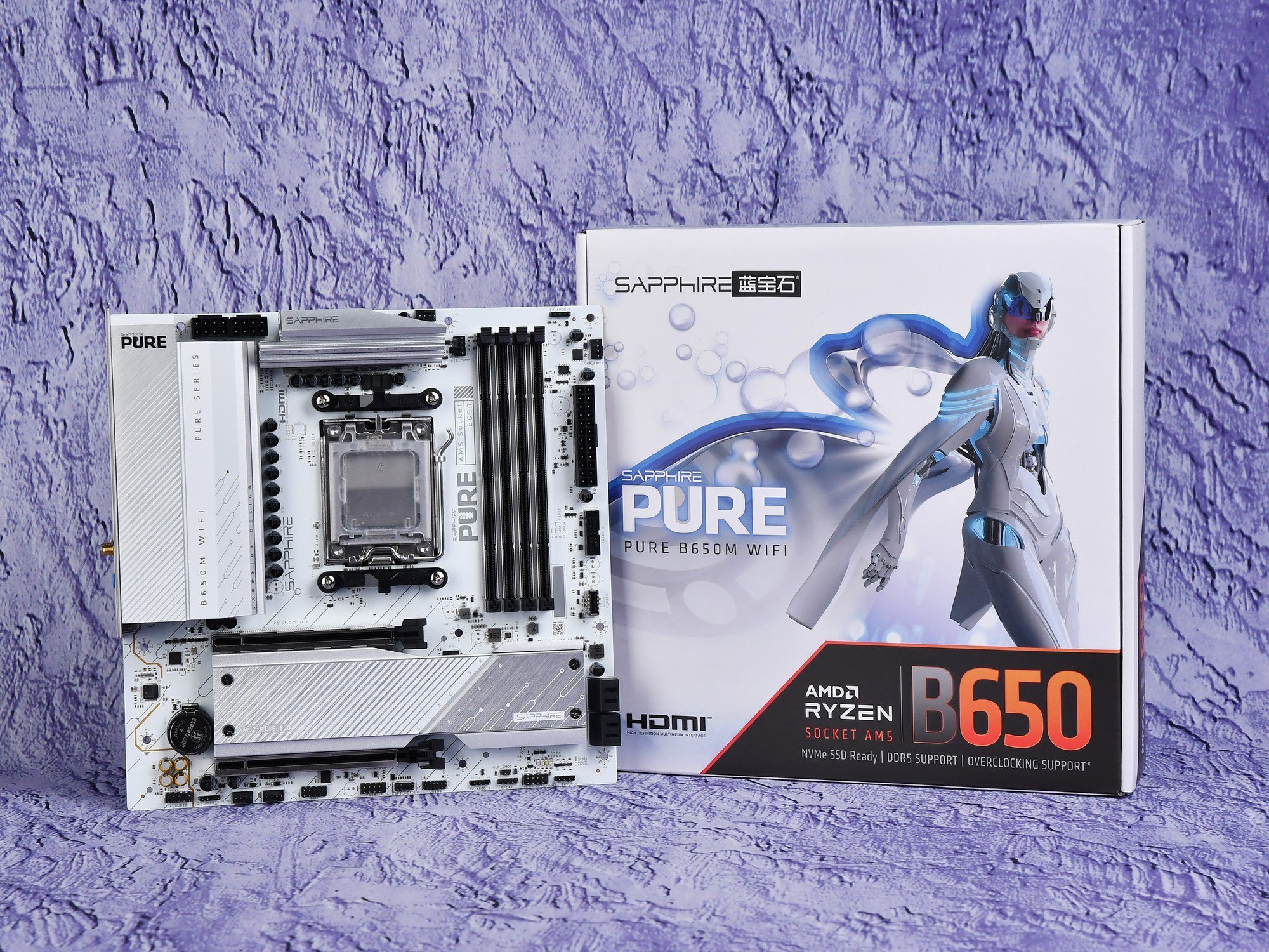 蓝宝石PURE 极地 B650M WIFI是一款性价比极高而且功能全面的B650主板。这款主板用料出色,能让AMD锐龙9 9950X3D跑满全部性能,支持内存超频DDR5 8000MT/s,上限不低,可以满足追求高标准玩家的需求。同时这款主板兼具基准的拓展能力,I/O区域配备8个USB接口,并且板载2组M.2插槽,支持PCIe 5.0,高速存储也不是瓶颈。而且蓝宝石注重细节设计,内存、显卡插槽采用金属加固,并提供SSD快拆按钮,装机稳定易于操作。