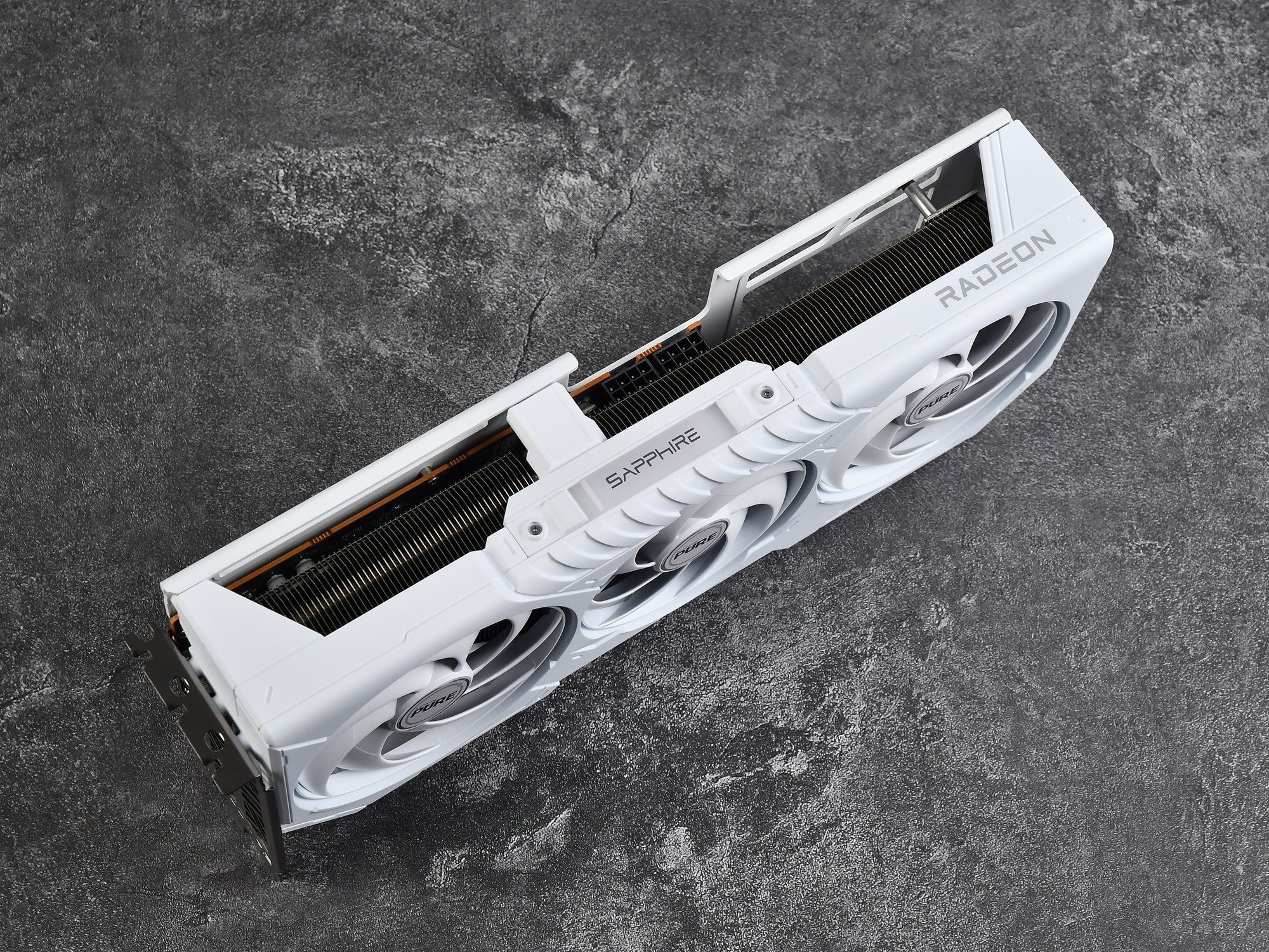 蓝宝石PURE 极地 RX 9070 GRE 12G D6 OC采用了一体式框架设计,通过导风罩和背板的多点结合,形成坚固的箱体结构。