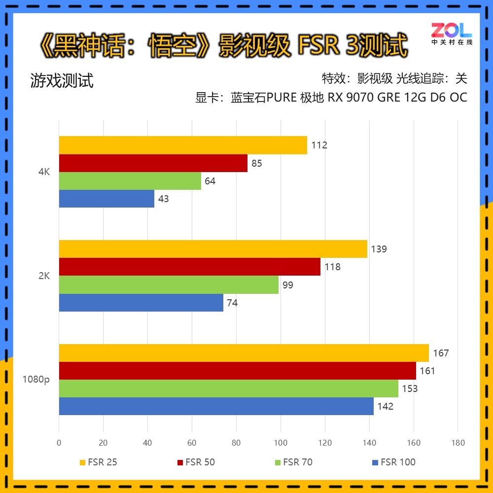 如目前画质天花板的《黑神话:悟空》在2K分辨率影视级画质中,开启FSR后也能达到百帧以上。