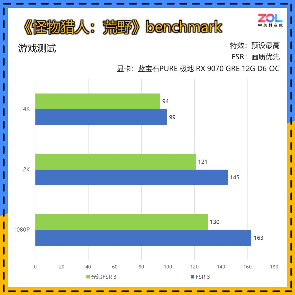 本次我们还测试了最新的《怪物猎人:荒野》benchmark跑分,不过由于目前游戏实际情况比较复杂,帧数会比benchmark更低,测试结果仅供参考。