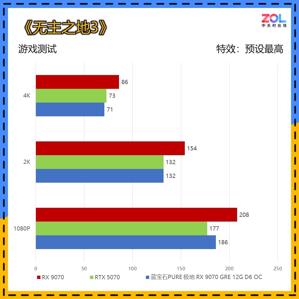 不过截至目前,蓝宝石PURE 极地 RX 9070 GRE 12G D6 OC在2K分辨率下的表现也已经完全能满足3A游戏的流畅需求。