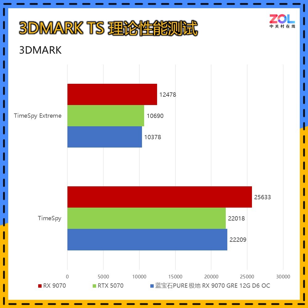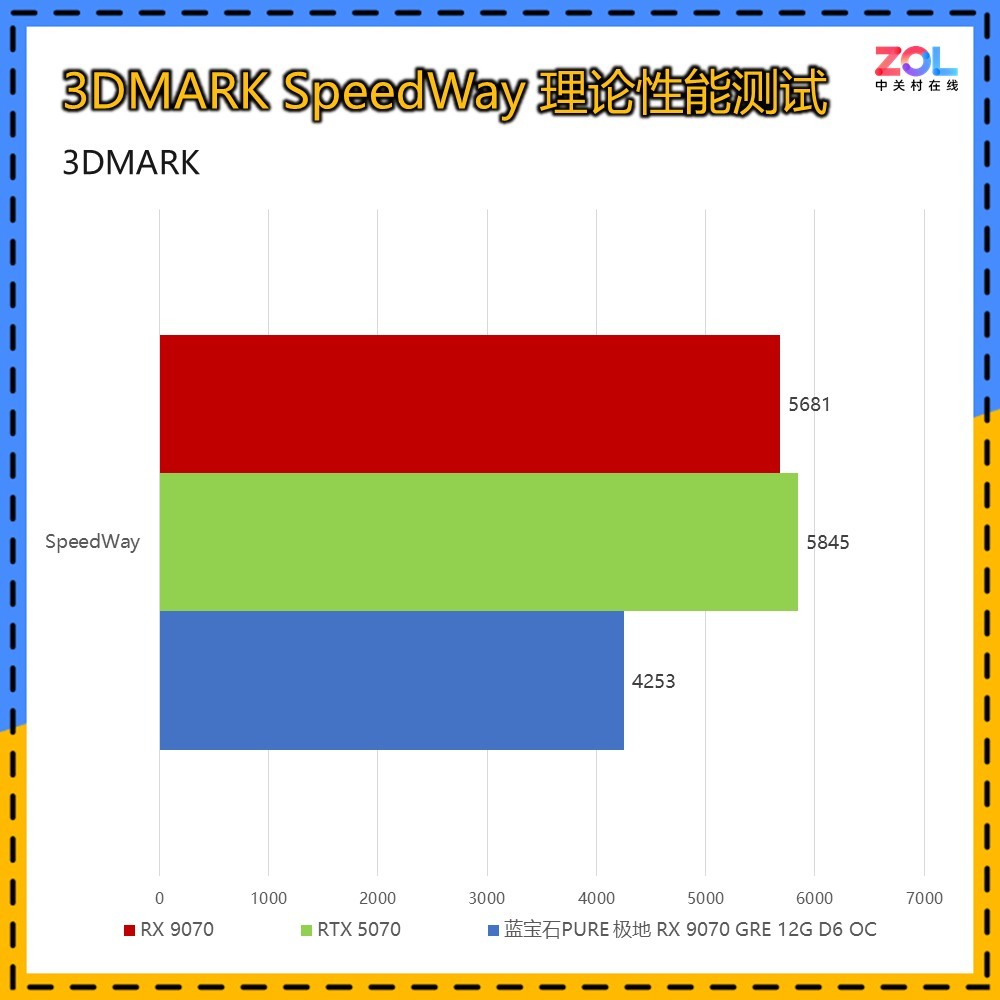 蓝宝石PURE 极地 RX 9070 GRE 12G D6 OC相较RTX 5070的差距为4%左右;