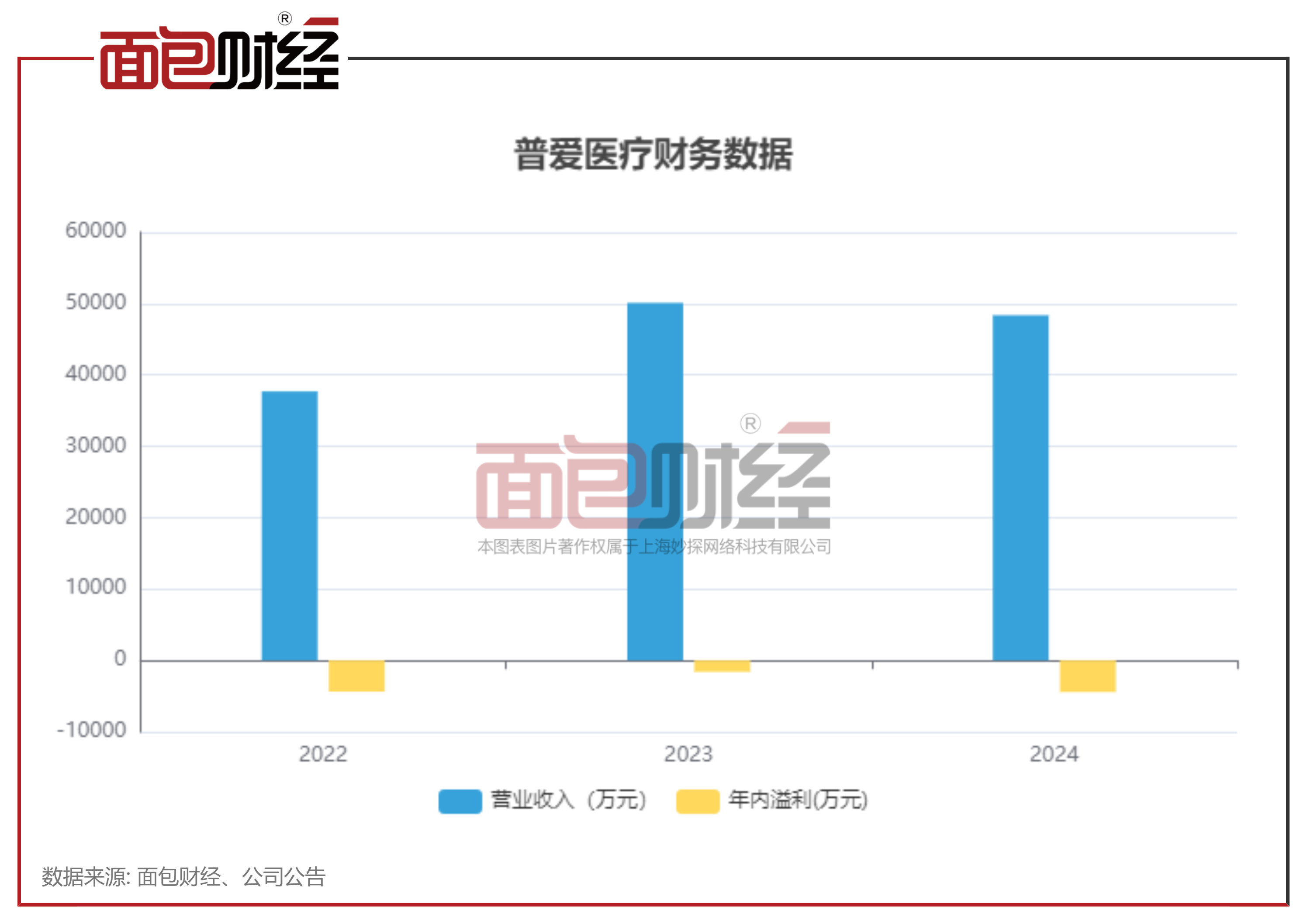 财务数据显示,普爱医疗营收有一定波动。2022年公司实现营收3.77亿元,2023年增长至5.01亿元,不过2024年略微下滑至4.84亿元。盈利表现上,公司2022-2024年分别录得年内亏损4370.4万元、1596.8万元、4422.6万元。