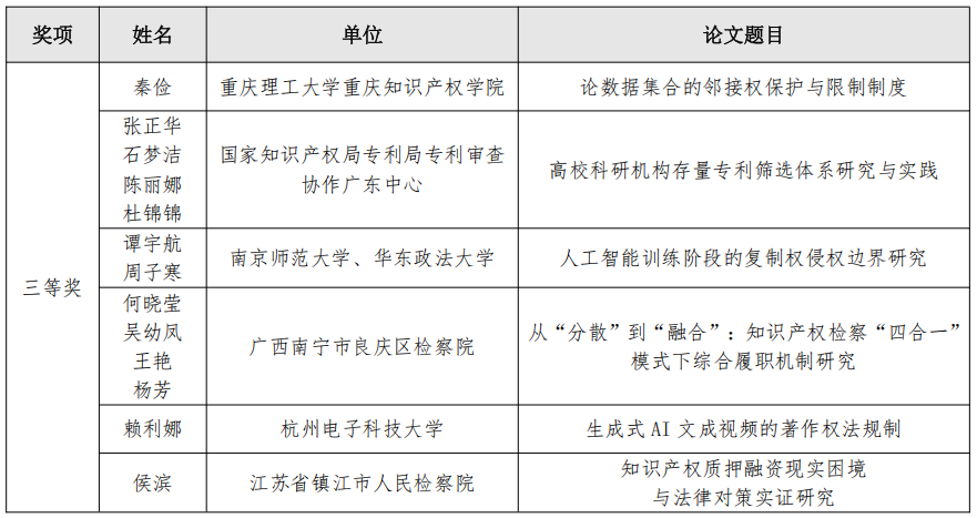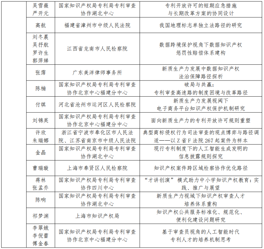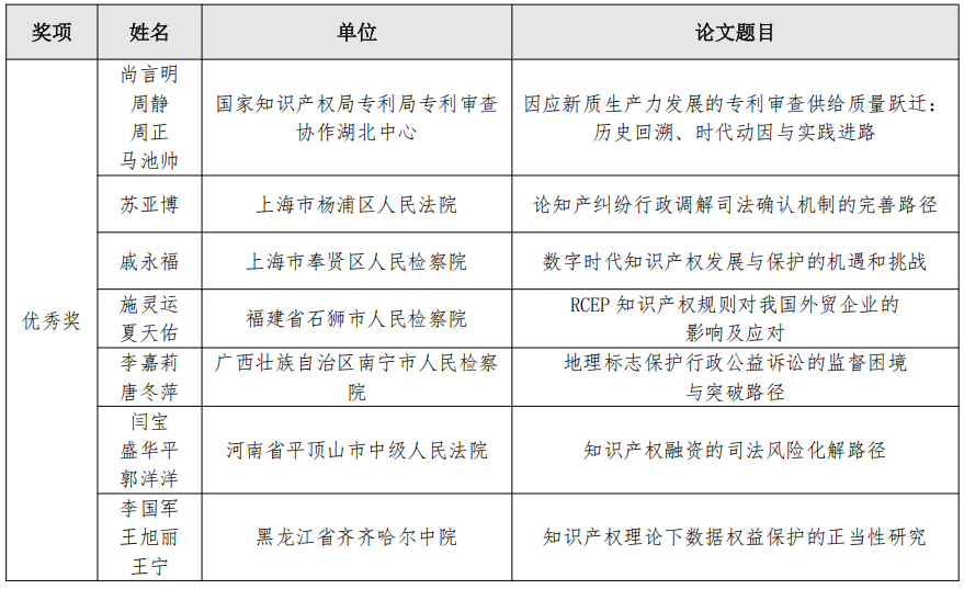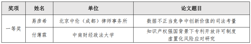 “新时代知识产权强国建设主题征文活动”获奖名单